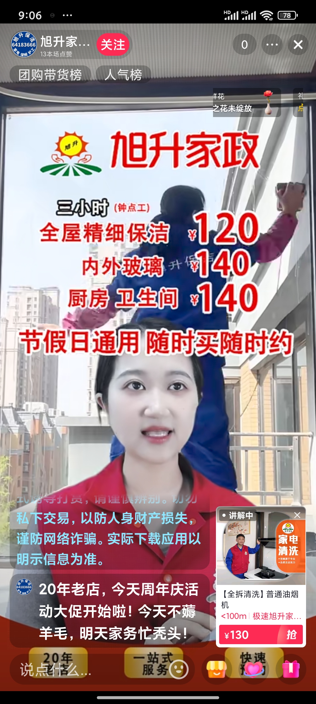 抖音直播更精彩,關(guān)注“旭升家政服務(wù)員”,每早8點10分,熱門團購一手掌握,更有主播現(xiàn)場解答你的所有疑問。還有抽獎和專屬優(yōu)惠,錯過血虧!